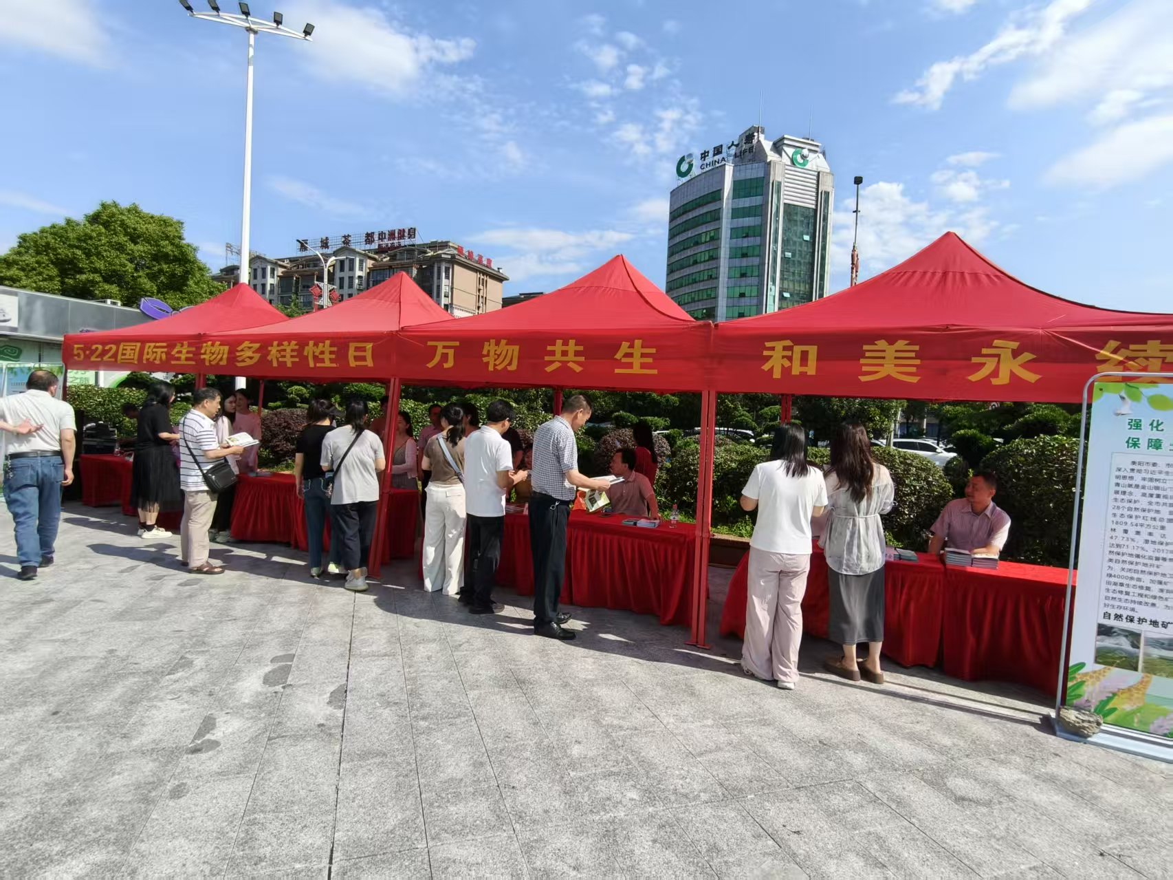 5月21日上午,衡陽(yáng)市生態(tài)環(huán)境局聯(lián)合市林業(yè)局、市農(nóng)業(yè)農(nóng)村局、市環(huán)境科學(xué)學(xué)會(huì)、高新管委會(huì)在高新開(kāi)發(fā)區(qū)步步高廣場(chǎng)開(kāi)展第25個(gè)5.22國(guó)際生物多樣性日宣傳活動(dòng)。今年國(guó)際生物多樣性日主題為"萬(wàn)物共生 和美永續(xù)",旨在呼吁社會(huì)各界以人與自然和諧共生之道,創(chuàng)和美永續(xù)之路。