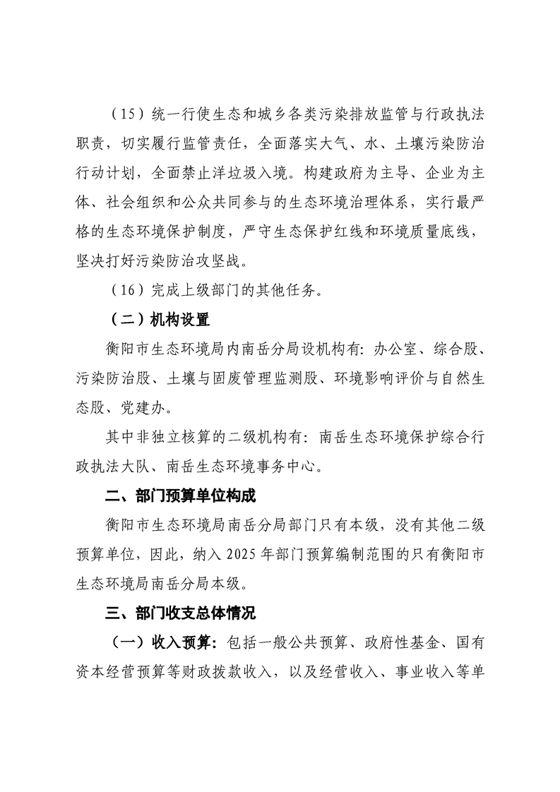 衡陽市生態(tài)環(huán)境局南岳分局2025年預(yù)算公開