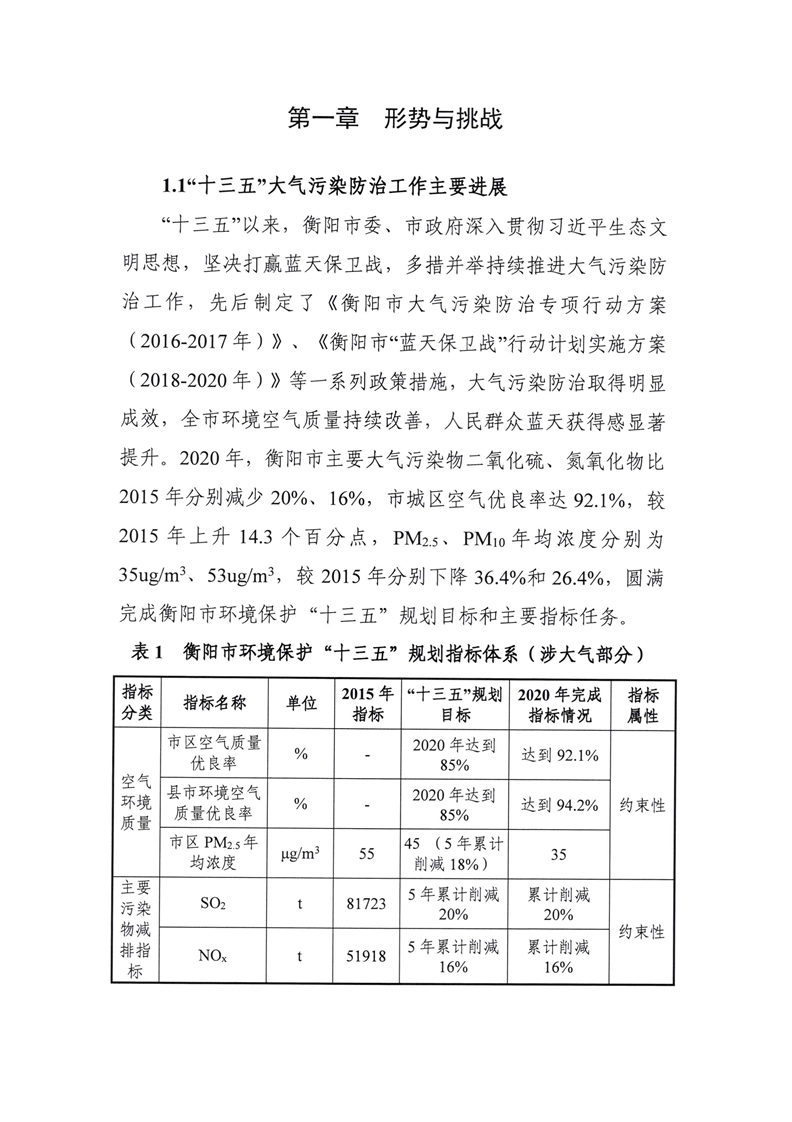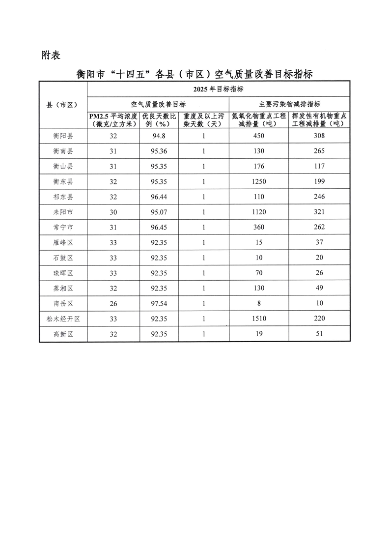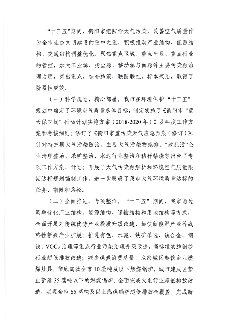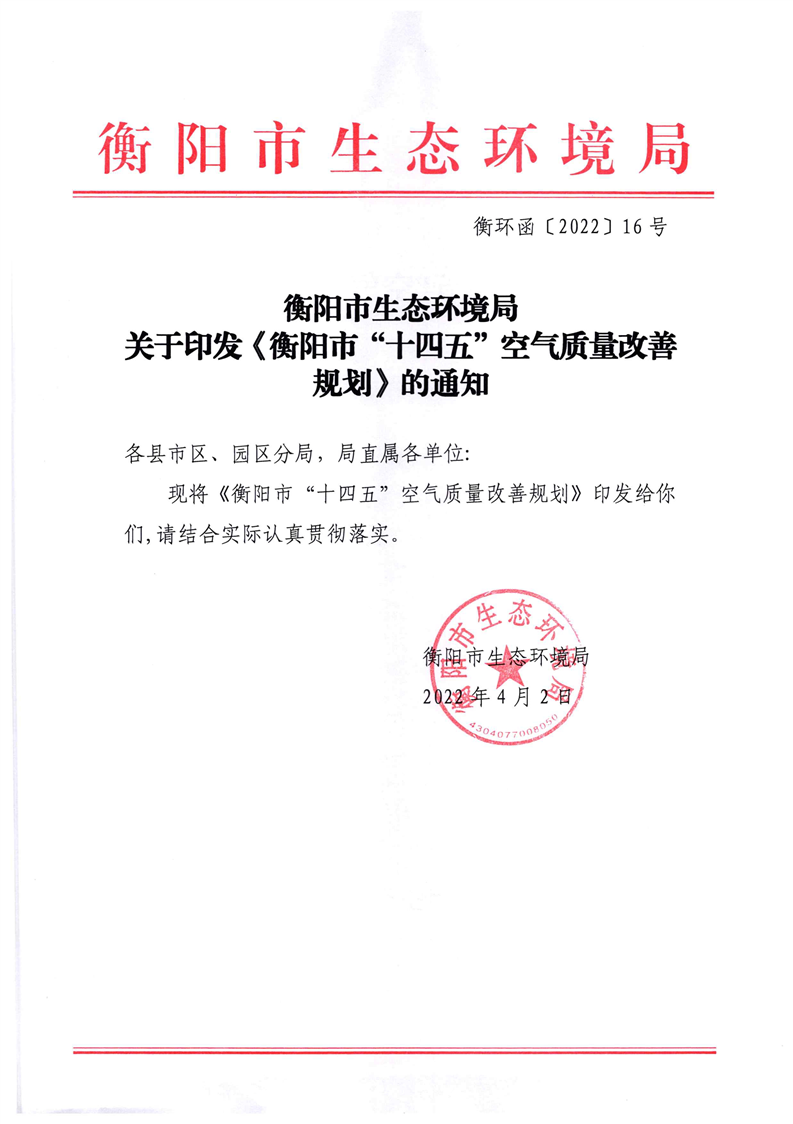 衡陽市生態(tài)環(huán)境局關(guān)于印發(fā)《衡陽市“十四五”空氣質(zhì)量改善規(guī)劃》的通知