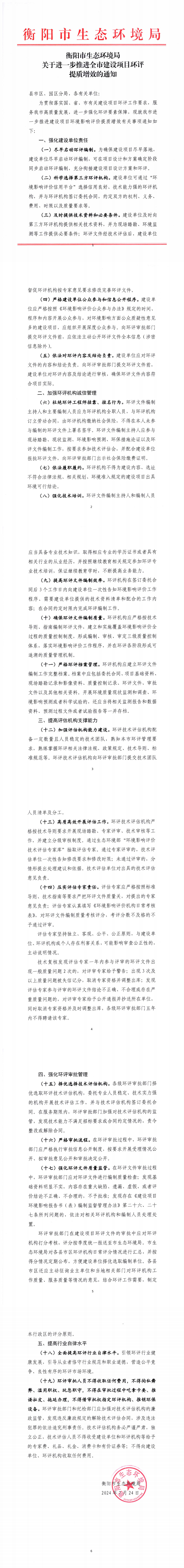 衡陽市生態(tài)環(huán)境局關(guān)于進一步推進全市建設(shè)項目環(huán)評提質(zhì)增效的通知